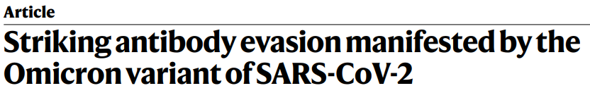 题为:《SARS-CoV-2奥密克戎变种表现出惊人的抗体逃避》