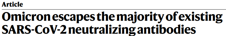 题为:《奥密克戎可以避开大多数的现有SARS-CoV-2中和抗体》