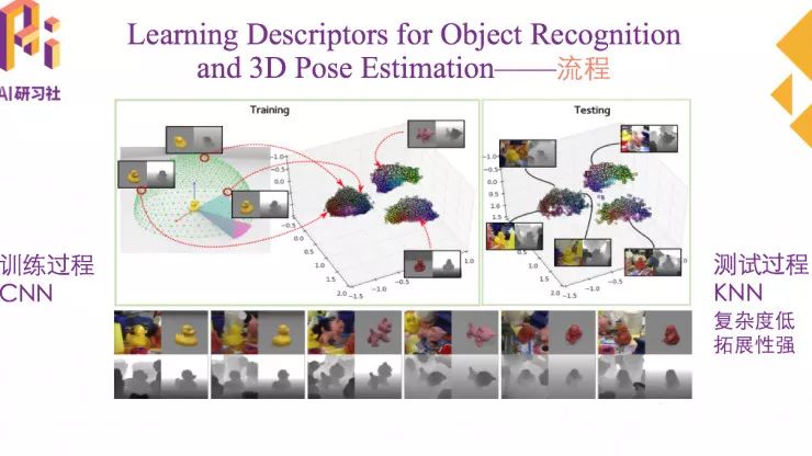 这篇文章的创新点在识别物体种类的同时进行位姿估计。他是通过卷积神经网络学习描述子实现的。这里的描述子不是局部描述子,而是整张图片的描述子。