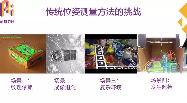 首先,传统的位姿测量方法大多是基于几何特征的方法,而基本的几何方法对于目标表面的纹理具有一定的依赖性,如第一幅图所示。
