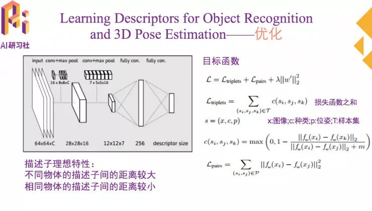 为了实现同时进行识别和位姿测量,想要获得的描述子需要有两个重要特性。不同物体的描述子间的距离较大。相同物体的描述子间的距离较小。