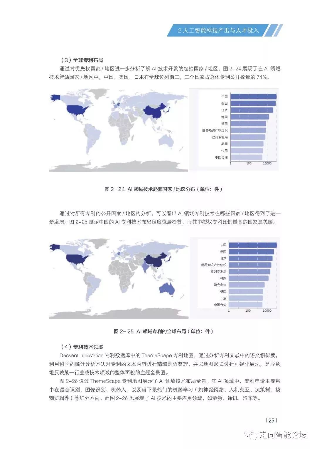 专利上,中国已经成为全球人工智能专利布局最多的国家,数量略微领先于美国和日本;