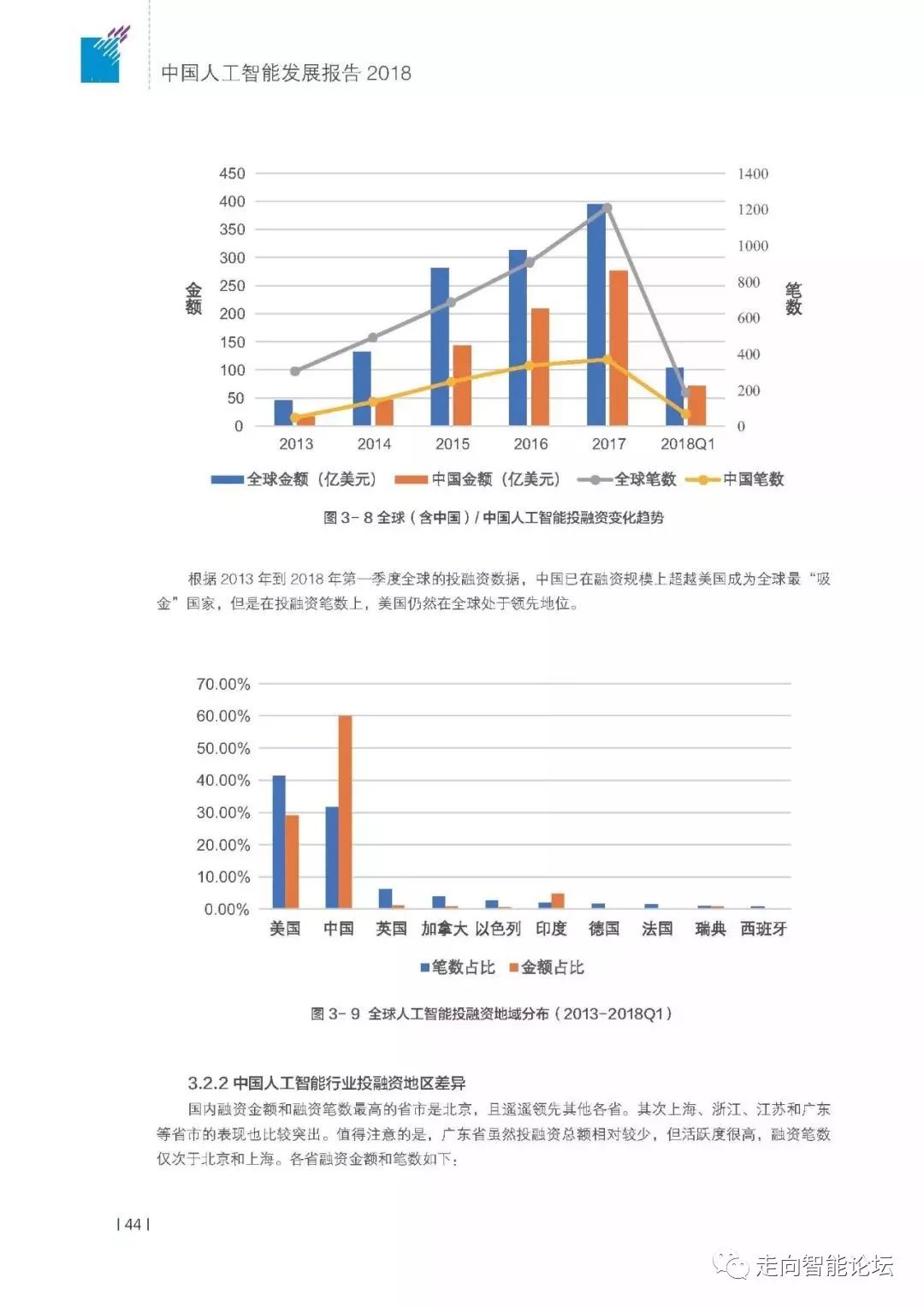 风险投资上,从2013年到2018年第一季度,中国人工智能领域的投融资占到了全球的60%,成为全球最“吸金”的国家。
