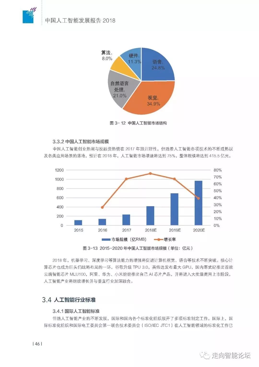 市场上,中国人工智能市场增长迅速,2017年其市场规模达237亿元,同比增长67%,其中计算机视觉市场规模最大,占比为34.9%。