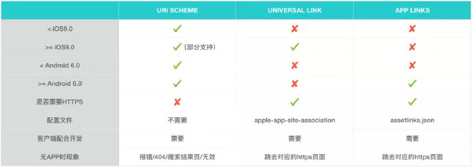 URI Scheme: 根据图片可以看到URI Scheme的兼容性是最高,在使用的过程中,会发现有很多限制:
