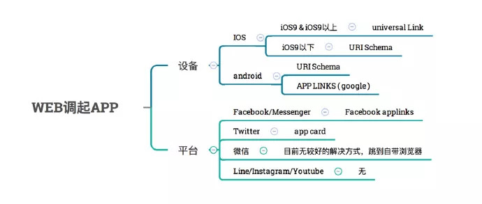 无论哪一种方式目前都没有解决几个问题: * 如果设备上没有安装这个app的时候,安装完毕后,无法保留住此时用户停留的上下文。 * 因为web没有办法监听到APP是否安装,所以都需要通过一些手段来兼容调起app或者是去下载页