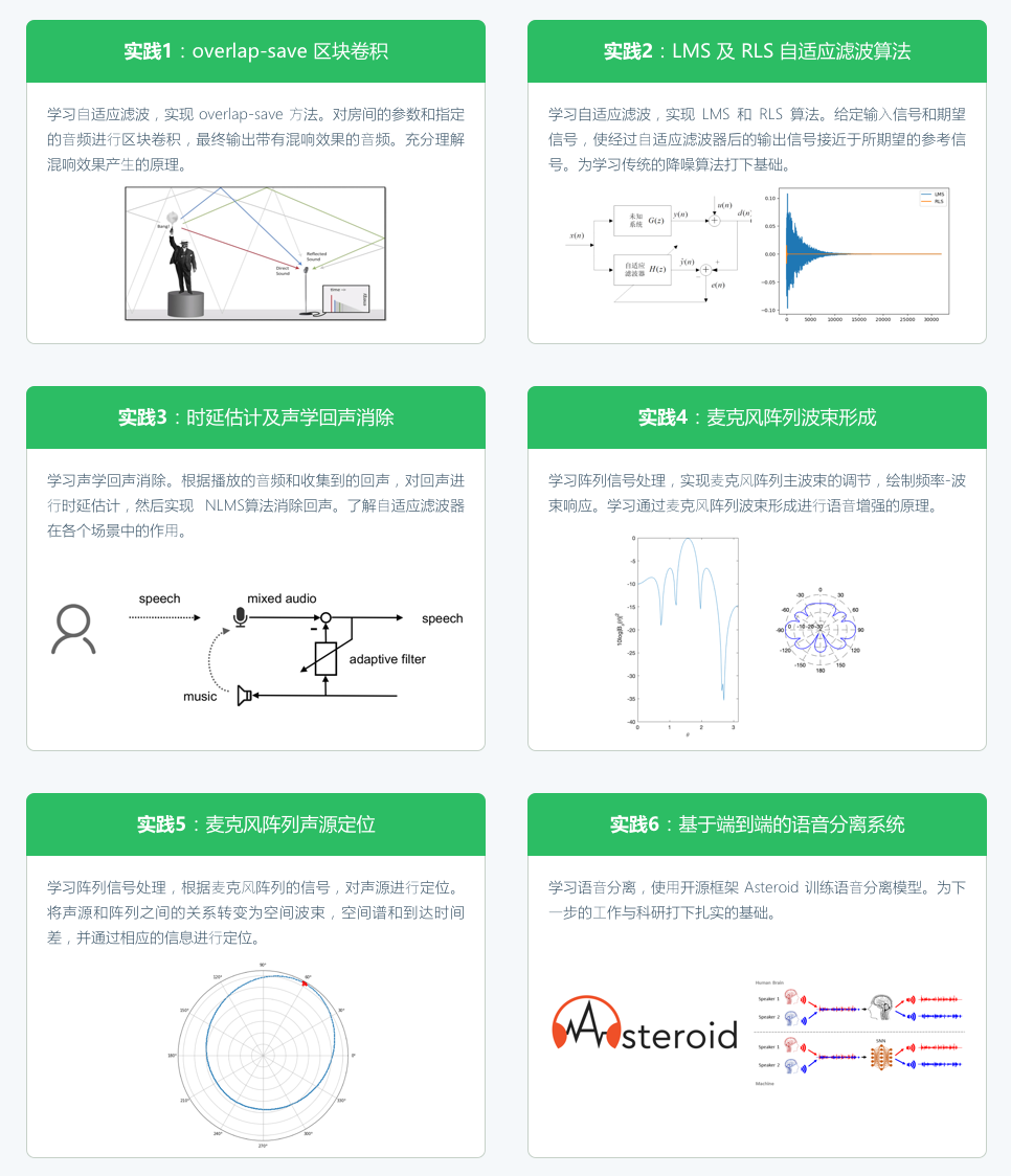 课程通过理论结合实践的方式,系统讲解语音信号处理技术背后的原理及应用,让大家高效入门,掌握语音信号处理的能力。