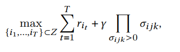 本文同样来自阿里-南阳理工大学团队,其针对交互推荐的场景提出了一种集合模函数和分布函数的多臂老虎机框架。其分别定义了评价一个推荐结果相关性的模长函数和评价结果多样新的分布函数,并推导出二者在单词决策下的反馈变化,将推荐集合的生成建模为一个多步骤的决策过程,以使用强化学习的策略最大化累计奖励,最终实现推荐的商品集合在贪心情况下满足相关性和多样性的最大化。同时其理论证明了其优化策略可以在有限轮的学习下达到最优的累计奖励。