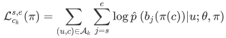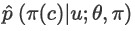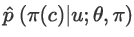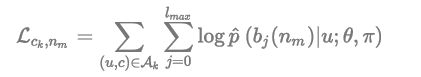为模型 M 返回的用户 u 对节点 π(c) 的偏好概率的估计值,其中 θ 为模型的参数。