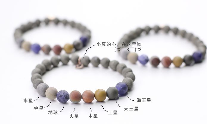 在双方的碰撞中,果壳商店的文创团队注意到矿石的色泽纹理和行星的外观非常相像,于是“八大行星”系列手链和项链就此诞生。