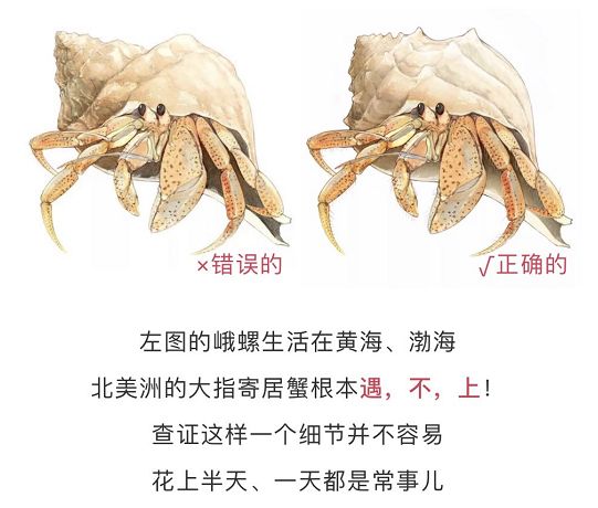 在征询了贝壳专家的意见后,画师重新绘制了这张寄居蟹的图片。