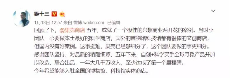 前几天,果壳CEO、科学松鼠会创始人姬十三发布了一条微博,回顾了果壳商店成立5年来的业绩,以及推出的经典文创产品。