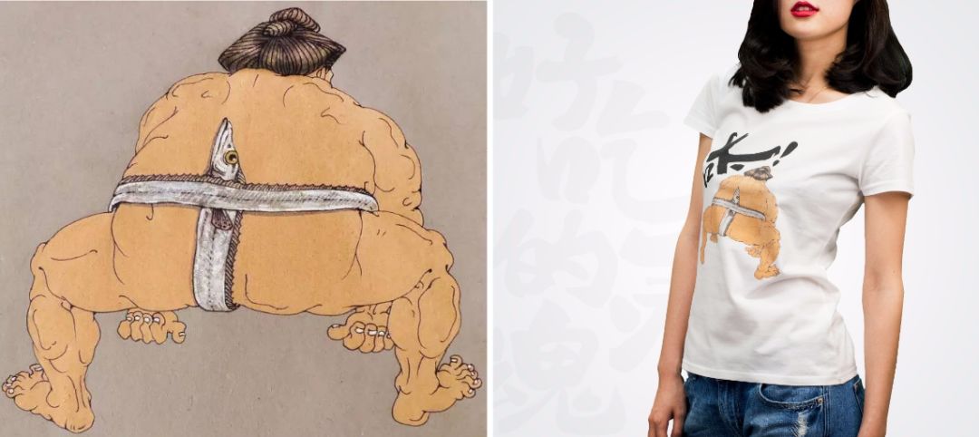 接着,果壳商店发动用户投票,选出了最直击灵魂的十幅画,并把排名靠前的一幅画购买下来,做成了一个T恤,叫做白带鱼力士。