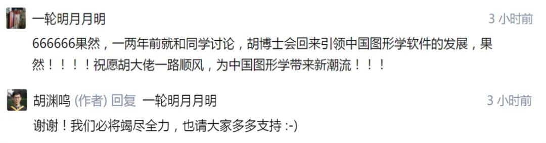胡博士本人也现身知乎,呼吁志同道合之士加入其团队。对于胡渊鸣的创业,网友也给予了非常高的期许,希望「引领中国图形学软件的发展,为中国图形学带来新潮流。」