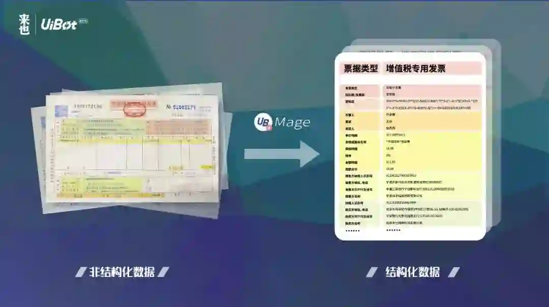 目前, Mage已能将图片、文档等非结构化数据,变为RPA可处理的结构化数据,并适用于财务票据自动处理、合同自动审核、银行开户信息自动录入等多种场景。超过300家企业通过使用来也科技的RPA+AI产品,提升了企业运营效率。