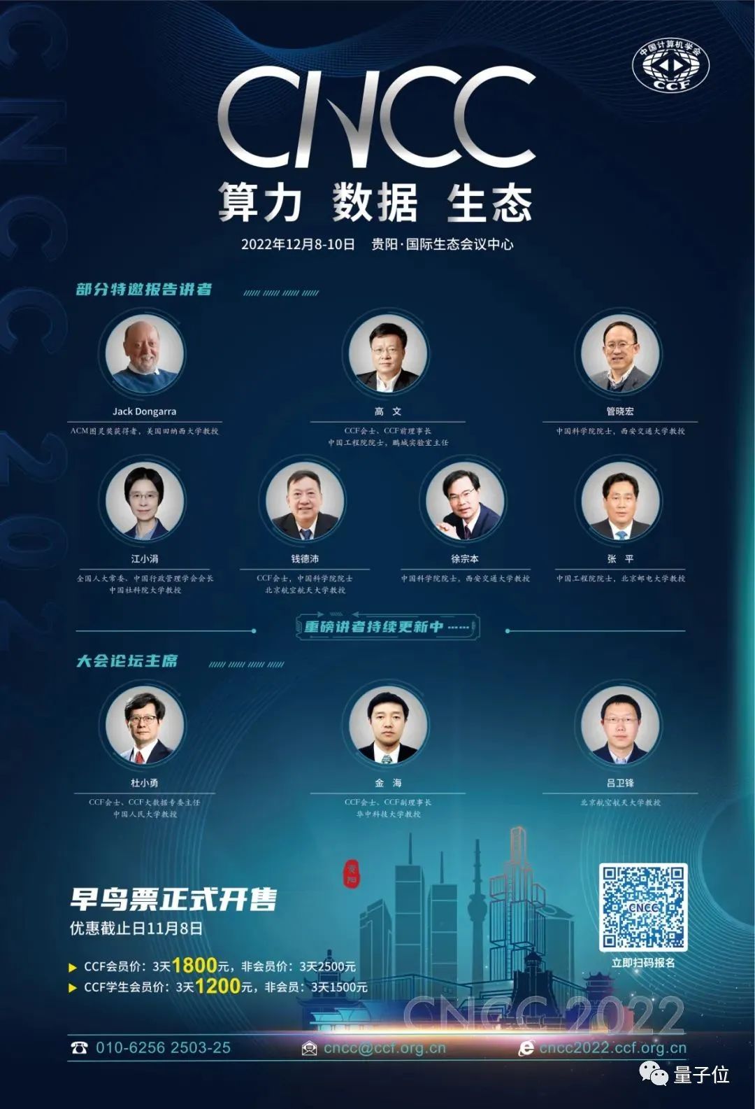 CNCC是级别高、规模大的高端学术会议,探讨计算及信息科学技术领域最新进展和宏观发展趋势,展示计算领域学术界、企业界最重要的学术、技术成果,搭建交流平台,促进科技成果转换,是学术界、产业界、教育界的年度盛会。今年邀请嘉宾包括ACM图灵奖获得者、田纳西大学教授Jack Dongarra,以及高文、管晓宏、钱德沛、徐宗本、张平等多位院士,还有七百余位国内外名校学者、名企领军人物、各领域极具影响力的业内专家,CNCC在计算领域的水准及影响力逐年递增。本届CNCC的主题是:算力、数据、生态。