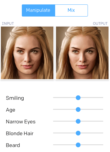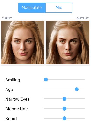 除此之外,你还能改变人物头发的颜色、眼睛大小和胡子。接下来,还有另一种玩法,即混合两张图: