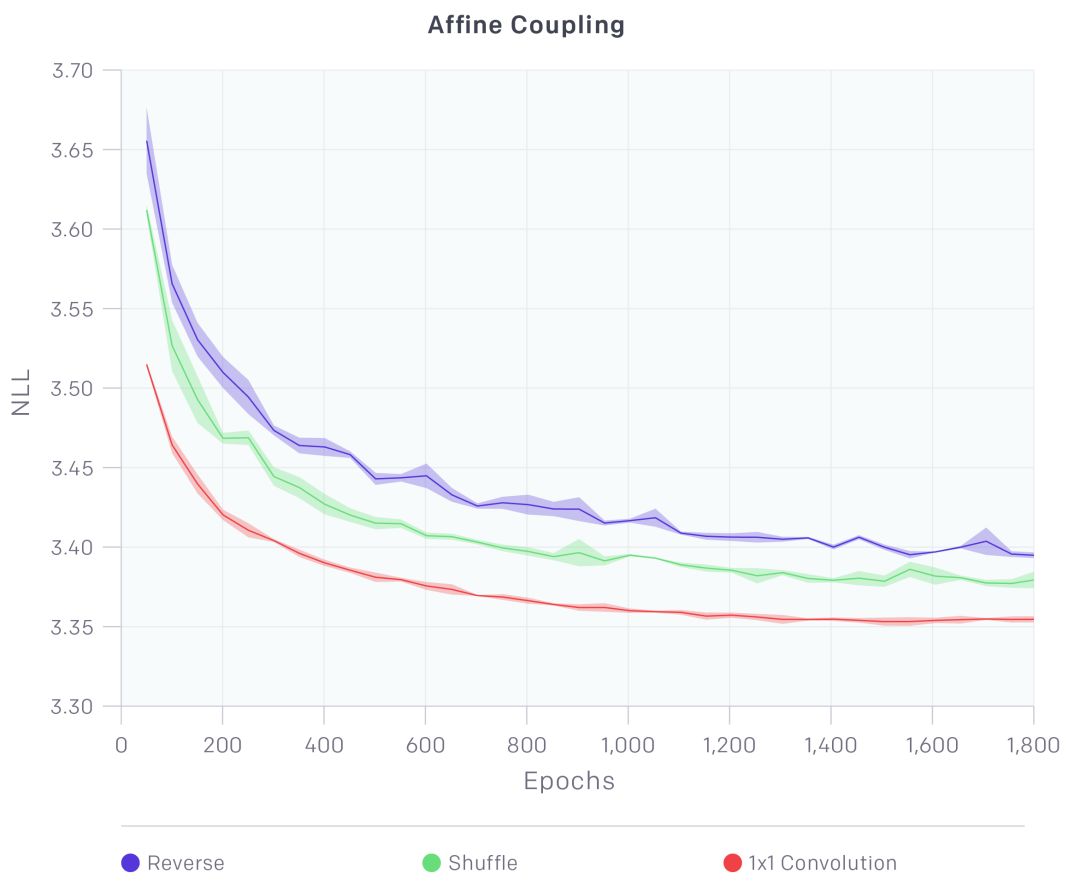 相比之前的RealNVP,我们的进步之处主要是一个可逆的1×1卷积,以及删减掉其他元素,简化了模型。