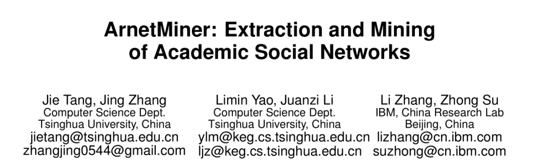获奖论文:《ArnetMiner: Extraction and Mining of Academic Social Networks 》