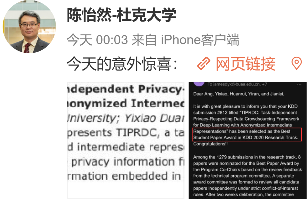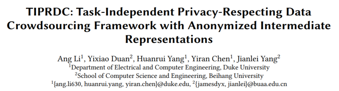 获奖论文:《TIPRDC: Task-Independent Privacy-Respecting Data Crowdsourcing Framework for Deep Learning with Anonymized Intermediate Representations》