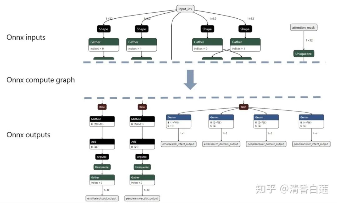 神经网络是一个计算流图,原始的执行流程还可以还很多优化,比如算子的合并,运行时不需要部分的裁剪等。常见的针对神经网络计算流图优化的引擎主要有 ONNX Runtime 与 TVM,其中 ONNX Runtime 使用最广。