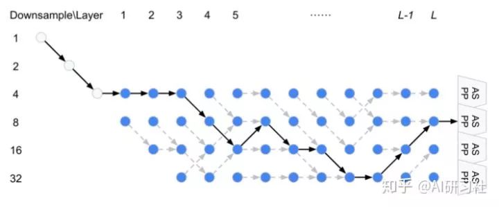 图注:AutoDeepLab发现的一种架构。图片来源:Liu et. al