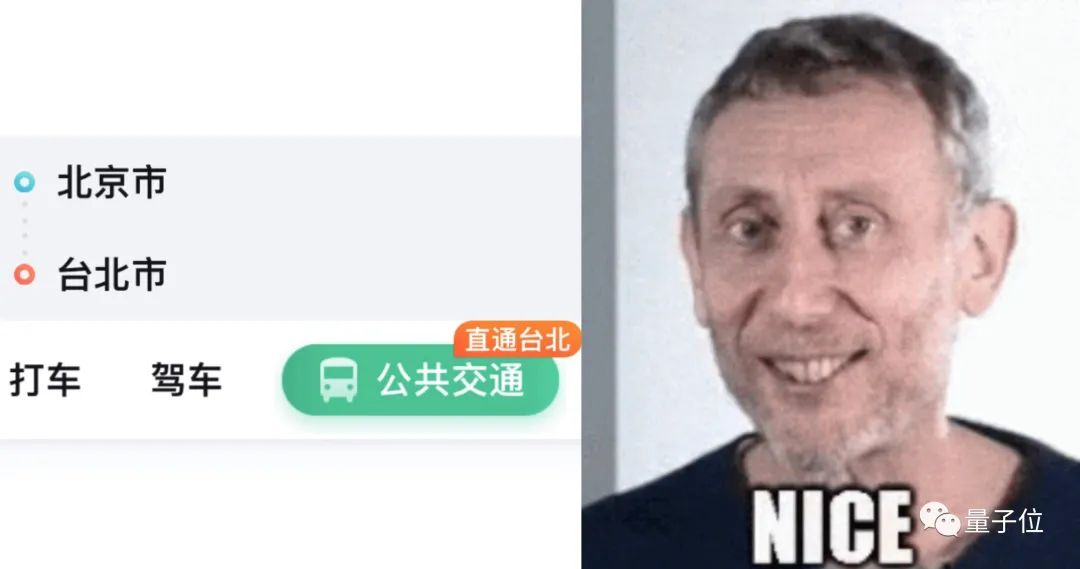 在百度地图APP上搜索北京到台北的公共交通,地图还会显示:“直通台北”。