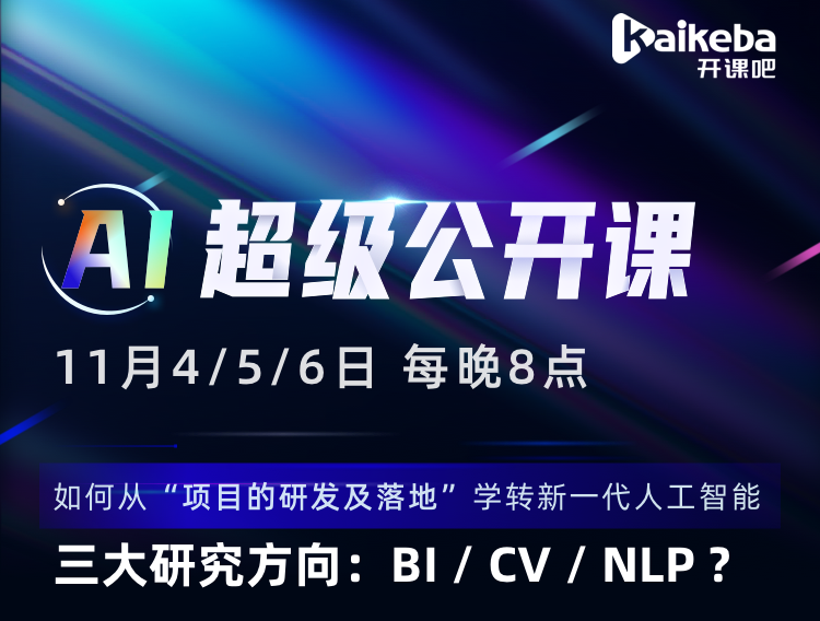 这对于想要学习AI的人来说,是一大福音。目前,人工智能主流方向是自然语言处理、计算机视觉和推荐系统,开课吧结合CNCC热议话题,集结10+位教研老师精心研发出免费《AI超级公开课》。根据AI细分方向学科特色,让你轻松入门AI行业。希望这堂AI知识盛宴能够帮助到你。