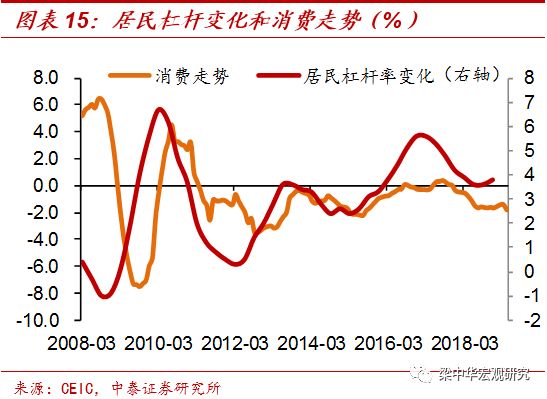 和国际经验相类似,我们发现居民杠杆率的变化反而和我国消费周期完全吻合,居民加杠杆快的时候,消费也好,而加杠杆慢或者去杠杆时消费也相对较差。