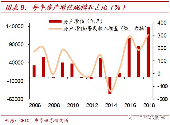 再加上两年内居民增持的房产有近24万亿,2018年底居民部门持有的房产总市值或在208万亿左右。