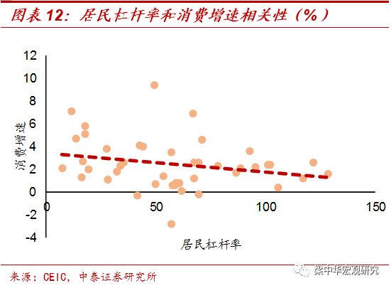 我们发现,各主要经济体的居民杠杆率和消费增速确有一定负相关,即居民债务水平越高,消费增速越低,但这种相关性在统计上是比较微弱的。