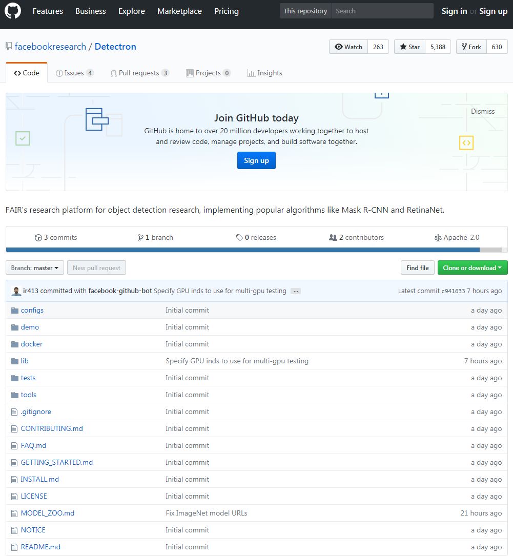 截至营长发稿,目前Detectron在Github上已经获得了5388颗星。
