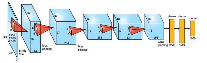 This architecture was one of the first deep networks to push ImageNet Classification accuracy by a significant stride in comparison to traditional methodologies. It is composed of 5 convolutional layers followed by 3 fully connected layers, as depicted in Figure 1.