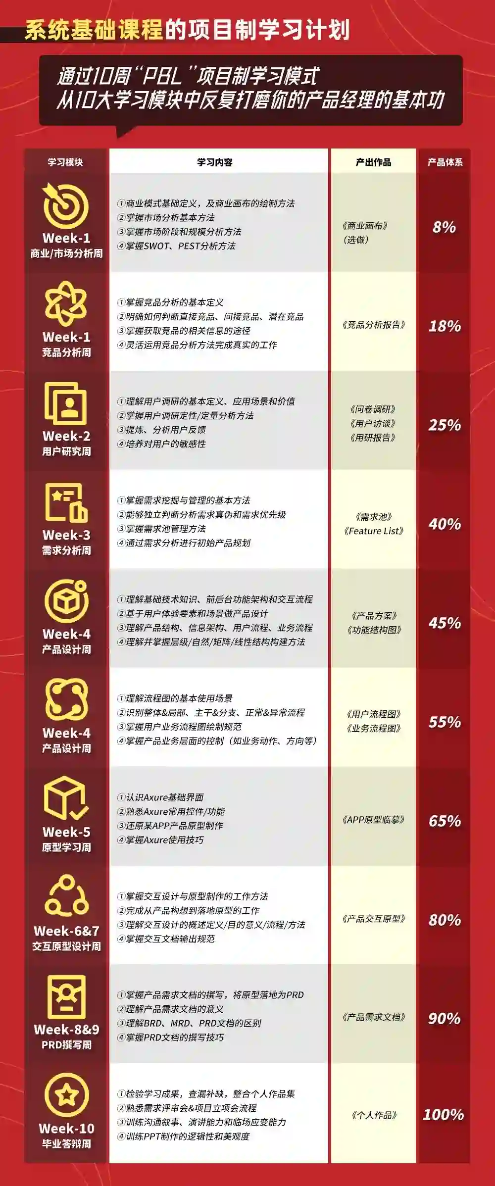 对课程感兴趣,想要在10周内尽快掌握初级产品经理必备技能,提高就业成功率的同学可以继续往下阅读↓↓↓