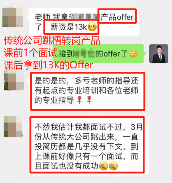 比如我就是参加的起点课堂·产品经理就业特训营,经过为期10周的培训之后,在求职导师的内推和指导下,拿到上海某互联网公司月薪13k产品offer。