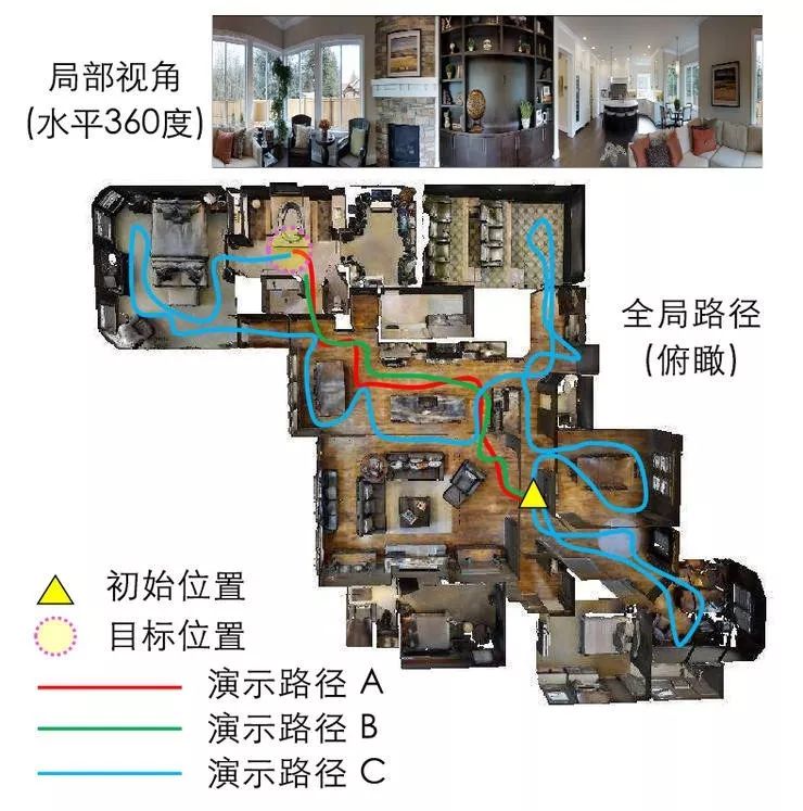王鑫:对,那篇论文是主要是解决视觉与语言结合去进行导航的问题。相较于其他的传统问题来说,导航问题中感知到的视觉信息是动态的,因为每次接收到语言的指令之后,机器人每次产生的动作可以向左转、向右转、以及往前走;产生动作之后,所看到的就发生了变化,所以它是一个动态的处理过程。而且它还是一个连续的处理过程,是经过一系列的动作,最后你才能判断这个机器人到底成功了没有。