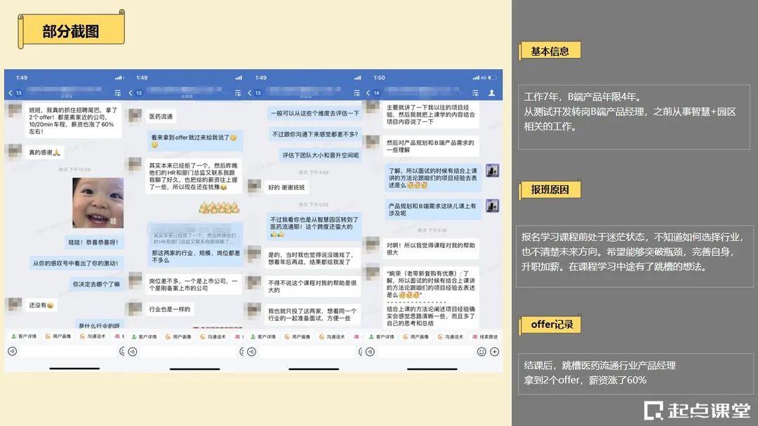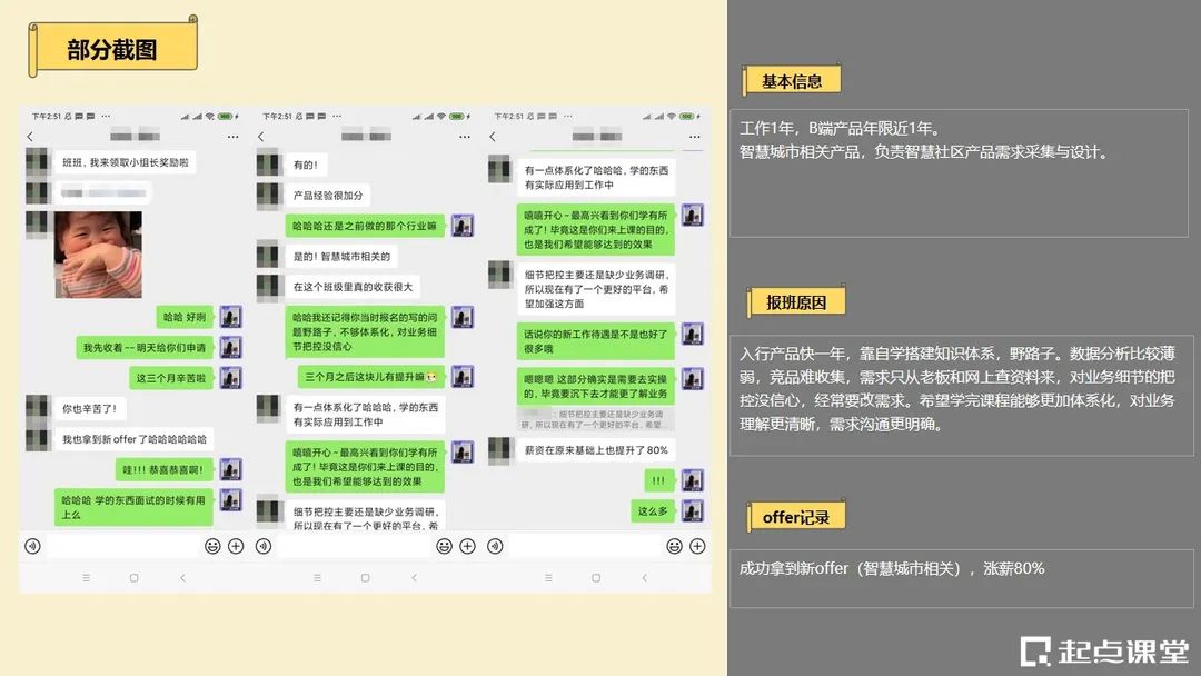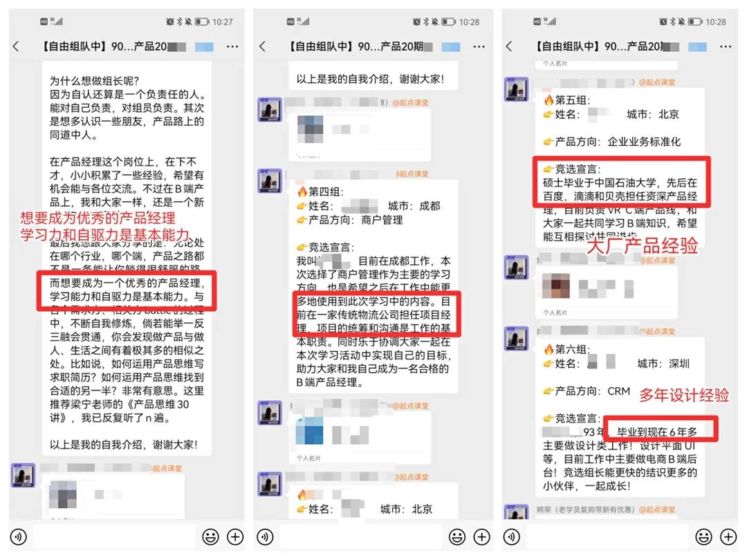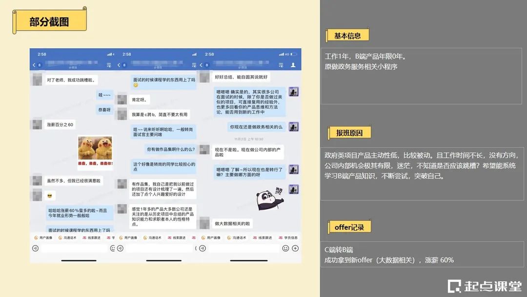 课程考虑到B端业务场景的复杂性,除了日常答疑,每周四还配有产品业务咨询会,授课老师会在班级群里给大家专门开小灶,通过语音直播的形式,帮助大家解决在工作中的具体产品/业务问题~