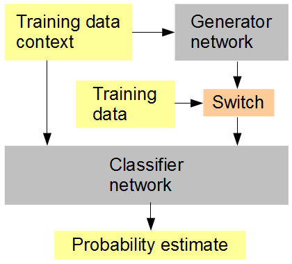解释一下上图。给定一个分类器网络,使之同时和生成器进行训练。分类器网络以随机、或交替顺序给出生成的原始数据。