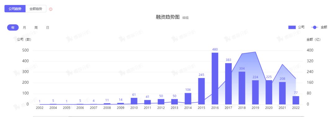 环保产业企业融资趋势近两年指数级增长 数据来源:睿兽分析