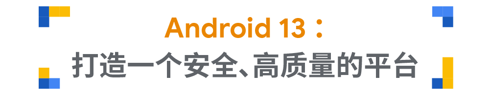 隐私和安全仍然是 Android 系统的首要任务。Android 13 新增了需向用户发送申请的通知权限、用于保护隐私的照片选择器,以及更加细化的媒体权限(改进与附近设备配对以及访问媒体文件时的权限)。