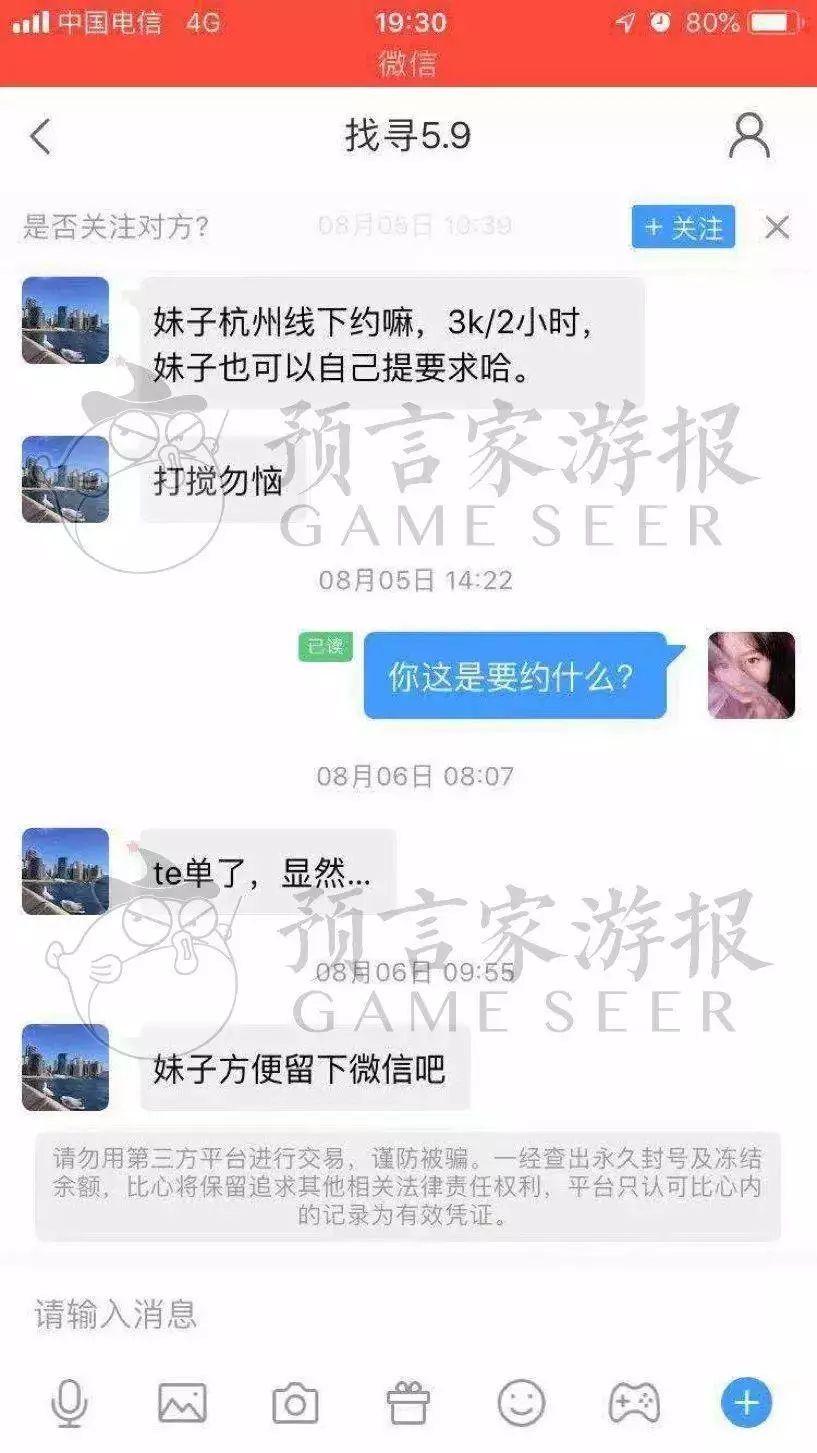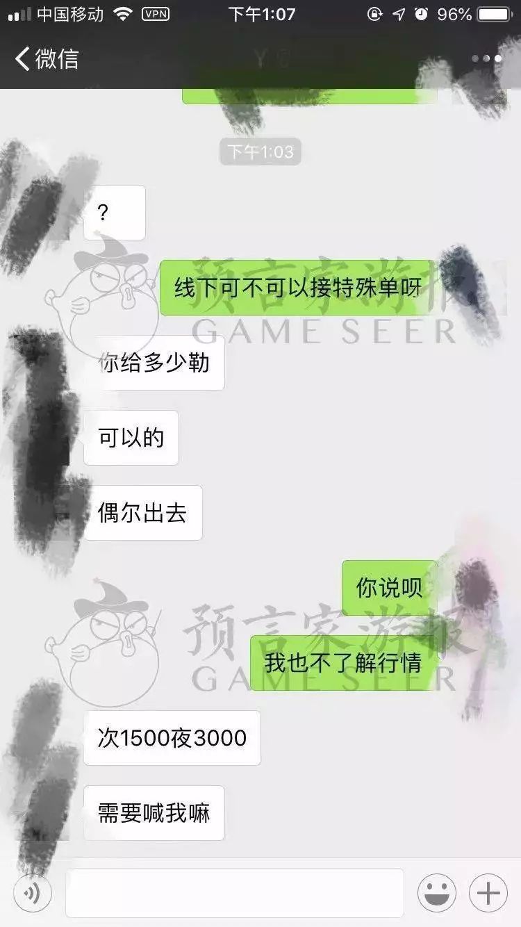 预言家游报调查发现,许多陪玩除了线上陪伴玩《王者荣耀》《LOL》等游戏外,还身陷色情陷阱之中,她们管陪玩的顾客叫“老板”,线下接色情服务单则被称为“特殊单”。