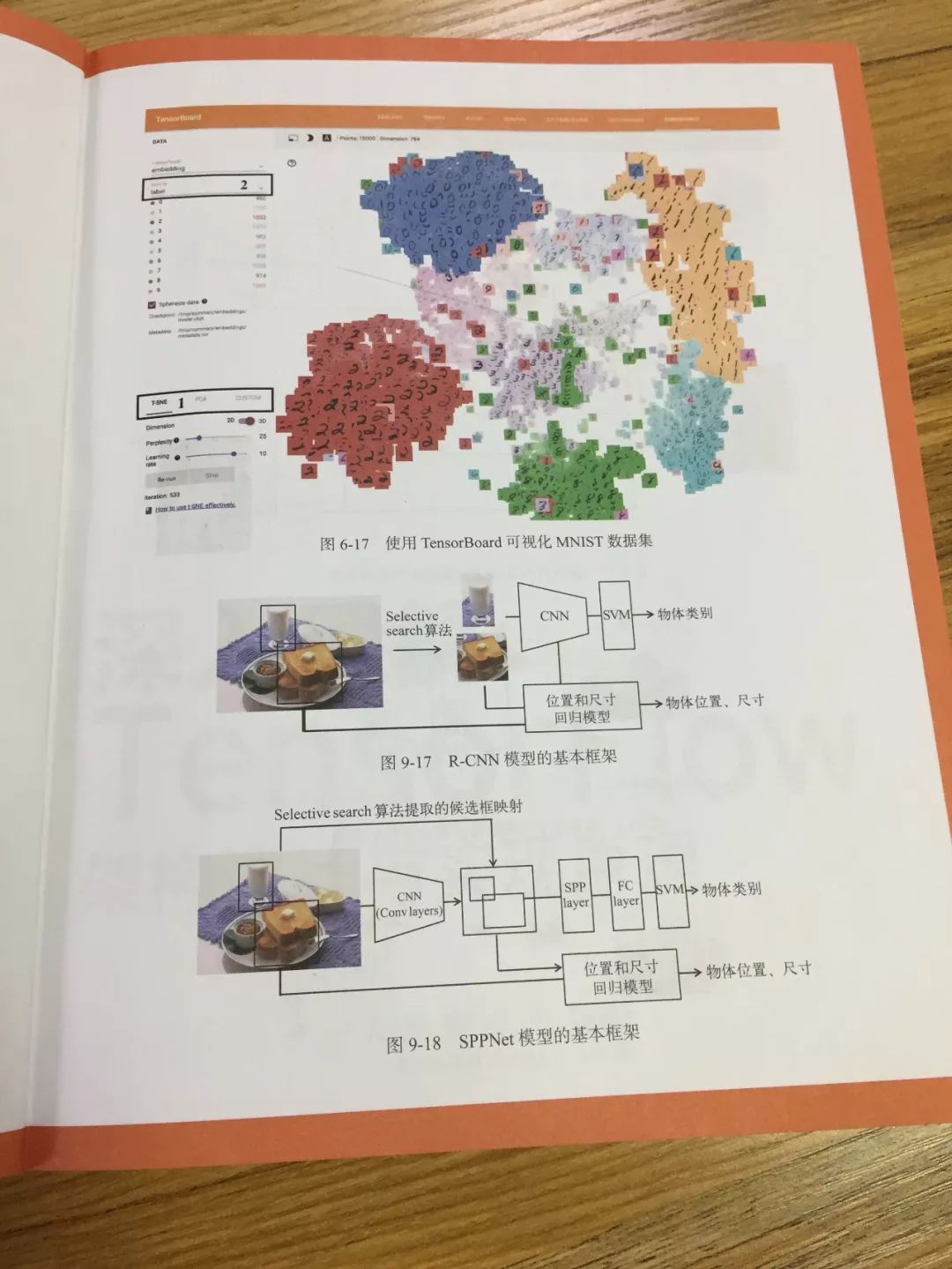 为了更加直观地了解相关图表,本书内附了彩插页,分颜色标识出书中的图例,你能清楚地看到图表每个部分所代表的内容,防止歧义。话说,TensorFlow 的图真的很漂亮,配上书的纸质,阅读体验超级棒!