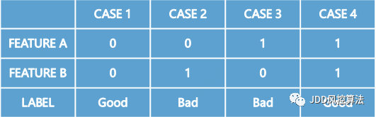 一方面,联邦学习理论上是可以获得最优解的,通过梯度下降迭代过程,可以实现联邦间的特征组合和交叉建模,从而解决如“异或”这样的非线性问题,这等价于把数据拼到一起后进行机器学习的效果。异或问题如下表所示: