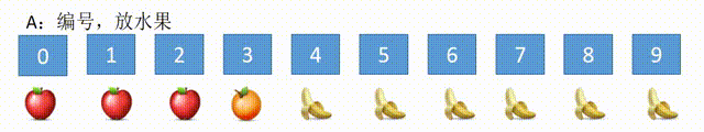 首先,由A进行如下操作:给盒子贴上编号,并按照财富值放入水果,放置规则如下:如果编号等于财富值的盒子放入橙子,编号小于财富值的盒子放入苹果,编号大于财富值的盒子放入香蕉。假设A 的财富是3 B$,则放置结果如图所示。