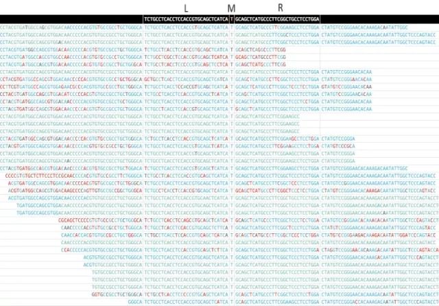 该软件可以对目标变异的原始序列进行可视化,并形成可交互性的HTML报告。在HTML结果中,可以查看每一个变异的所有支持序列,包括其中每一个碱基的质量值。下图展示了一个EGFR p.T790M的HTML可视化报告结果。