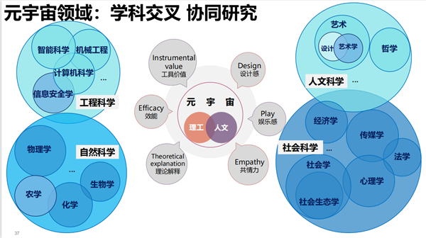 第二部分从文学、艺术学、电影学、传播学、经济学等多学科视角解读元宇宙,提出“十理框架”“意境论”“情感温室”等概念,总结元宇宙和真实世界的三类关系。
