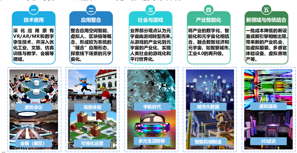 元宇宙六大递进类型:伪准元宇宙、雏形元宇宙、标准元宇宙、完备元宇宙、高超元宇宙、极致元宇宙。