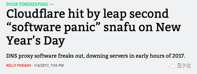 在2017年新年,多余的1秒钟让公司的DNS代理软件崩溃并切换到负值,引发了「软件恐慌」。