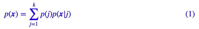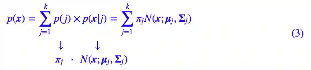 具体来说,对于已有的向量 x1,…,xn,GMM希望找到它们所满足的分布 p(x)。当然,不能漫无目的地找,得整一个比较简单的形式出来。GMM 设想这批数据能分为几部分(类别),每部分单独研究,也就是: