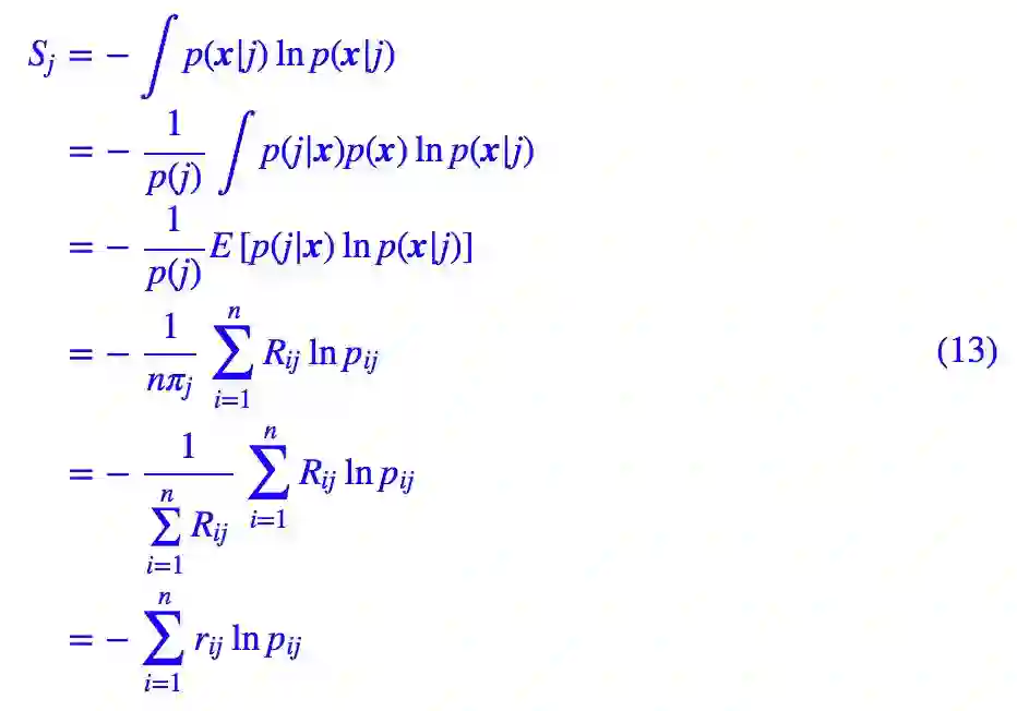 现在我们用 GMM 来聚类,结果就是得到一个概率分布 p(X|j) 来描述一个类,那么这个类的“不确定性程度”,也就可以衡量这个类的“团结程度”了。